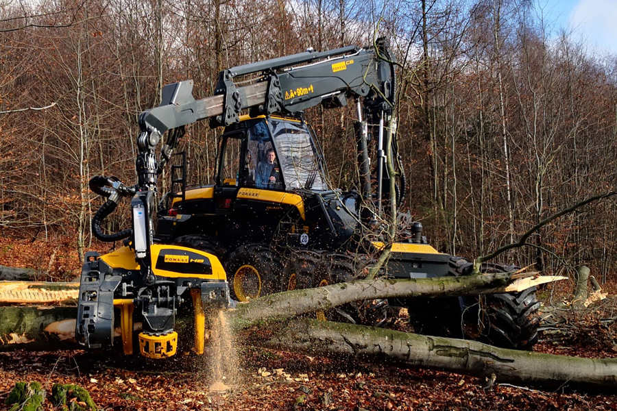 Starkholzharvester mit Zopfsäge